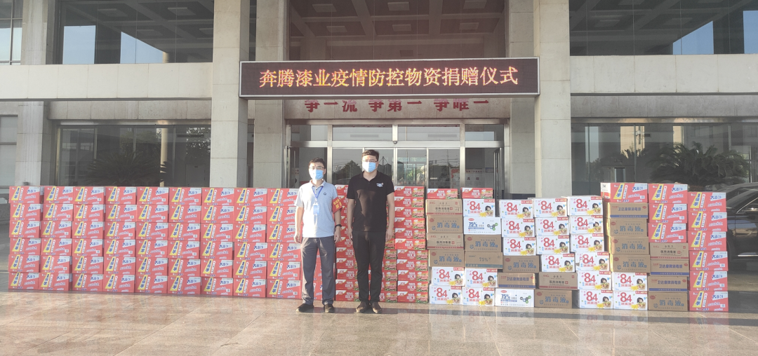 連日來,疫情防控牽動著全市人民的心,各鎮、街道、社區的工作人員與醫護人員夜以繼日、不辭辛苦,奮戰在抗疫一線。奔騰漆業履行社會責任,踐行初心使命,以“守望相助,共克時艱”為主題,傾情助力疫情防控,全力支持政府疫情防控工作。