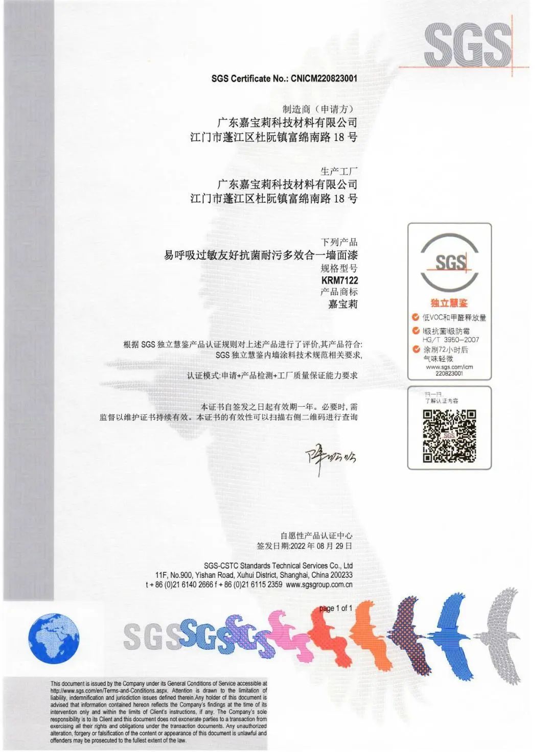 易呼吸墻面漆獲頒國(guó)內(nèi)第一張涂料行業(yè)獨(dú)立慧鑒認(rèn)證,是嘉寶莉長(zhǎng)期以來(lái)堅(jiān)持綠色發(fā)展、引領(lǐng)品質(zhì)、健康、環(huán)保,創(chuàng)造美好生活的重要體現(xiàn)。而此次SGS獨(dú)立慧鑒認(rèn)證的頒發(fā),則是對(duì)嘉寶莉易呼吸墻面漆強(qiáng)大產(chǎn)品實(shí)力的又一次佐證。嘉寶莉堅(jiān)信,只有專注研發(fā)創(chuàng)新,追求卓越品質(zhì),才能真正實(shí)現(xiàn)用涂料裝飾和保護(hù)我們熱愛(ài)的世界。