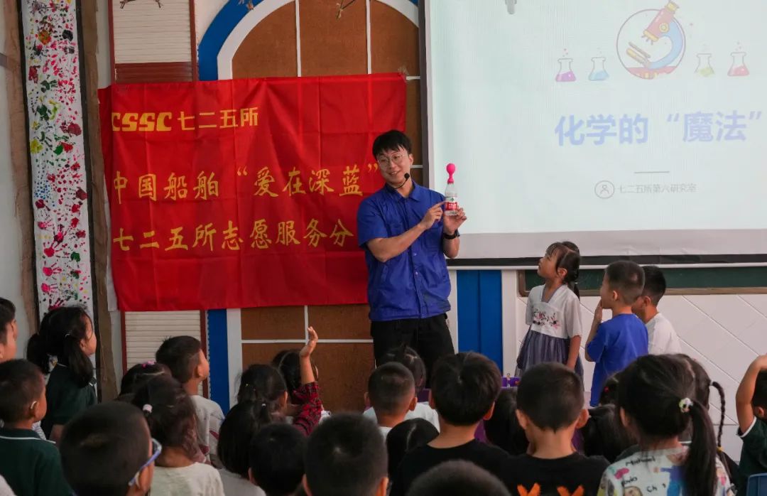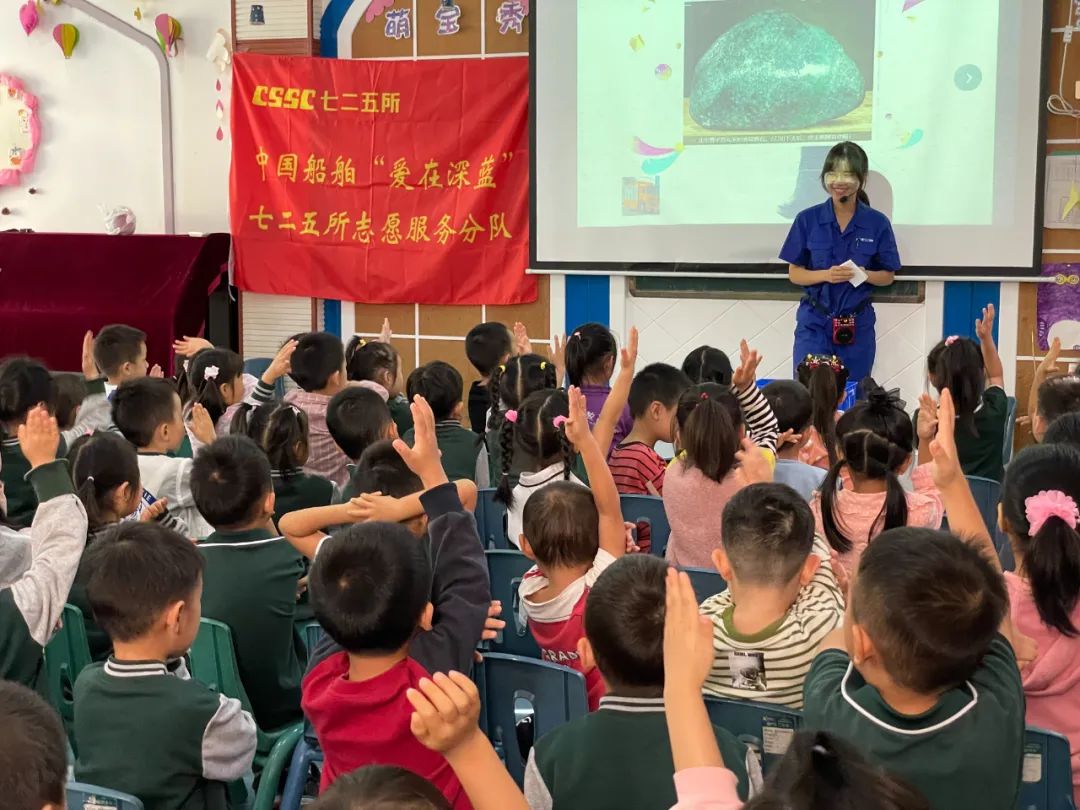 為積極履行央企社會責任,進一步做優中國船舶“愛在深藍”團青品牌,向全社會展示奉獻擔當的七二五所青年形象,以實際行動踐行“請黨放心、強國有我”的青春誓言。9月28日,來自第六研究室的青年志愿者在所團委的組織下,到瑞科幼兒園開展船舶科普進校園活動。全園200余名兒童在志愿者的帶領下,走進了一個屬于科學、屬于船舶的世界。