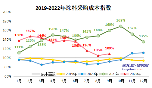 中國涂料工業協會公布了9月涂料價格指數情況。其中,成品價格指數9月為117%,較上月下跌1%;原材料采購指數9月數據為109%,較上月上漲4%,涂料產業鏈整體供給穩定。