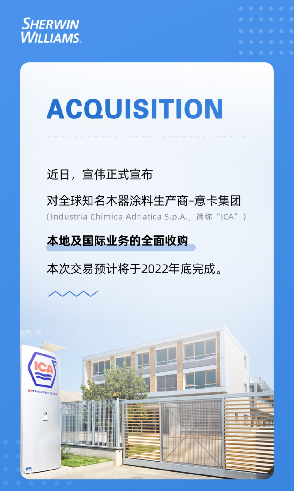 收購(gòu)|宣偉宣布收購(gòu)意大利木器涂料公司ICA