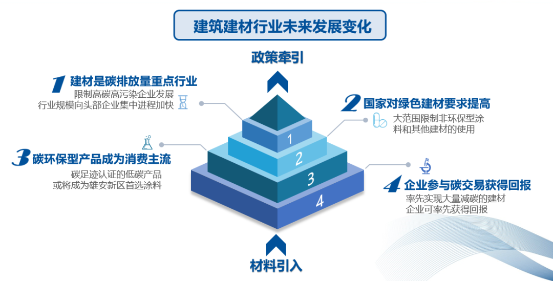 隨著雙碳“1+N”國家政策+綠色建材下鄉等政策的出臺,對建材行業的可持續發展提出了新的要求。