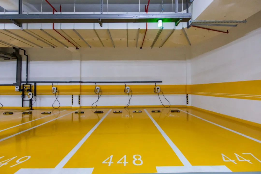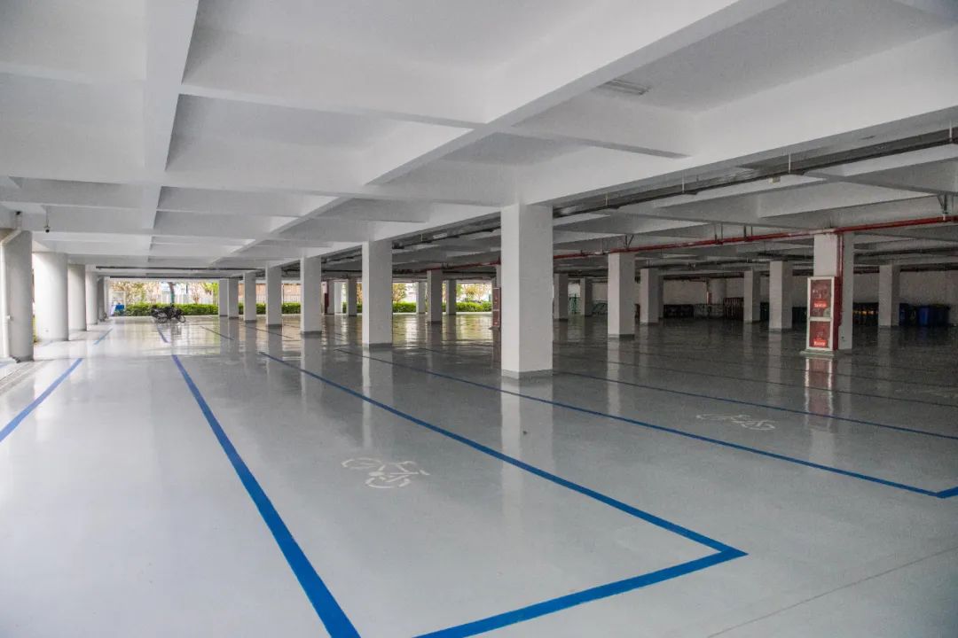 考慮到行車道走車頻繁,對地坪的耐磨性及強度要求相對較高;為保證行人安全和降低行車噪音,且具備一定的防滑效果,“傳化漆”品牌為臨平體育中心地下車庫鋪設耐磨防滑的環(huán)氧地坪涂料,設計厚度1~2mm。