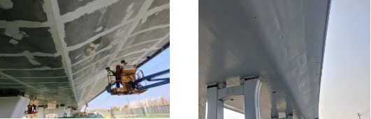 該體系采用高滲透性的水性環氧封閉底漆,它在強堿性環境依然具有良好的附著力和漆膜強度,能夠阻隔混凝土中鋼筋與空氣接觸,從而起到保護作用。而水性環氧云鐵中間漆增強了整個涂層的層間附著力和保護性能,抗滲透性、重涂性出眾,耐鹽霧。水性氟碳面漆則賦予了漆膜優異的耐候性,令項目能夠經受太陽光長期暴曬并保持光澤。