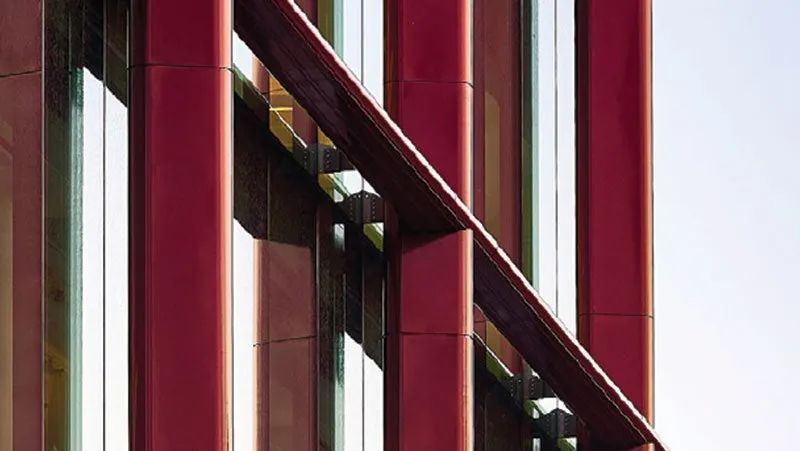 為了開發(fā)令人驚嘆的“銀河紅”配方及其閃閃發(fā)光的美學(xué)效果,PPG建筑金屬涂料團(tuán)隊(duì)幫助客戶定制顏色,使得 PPG Coraflon 粉末面漆結(jié)合了玻璃薄片技術(shù),為金屬框架增加了立體的閃爍光澤。