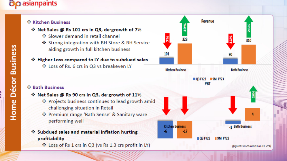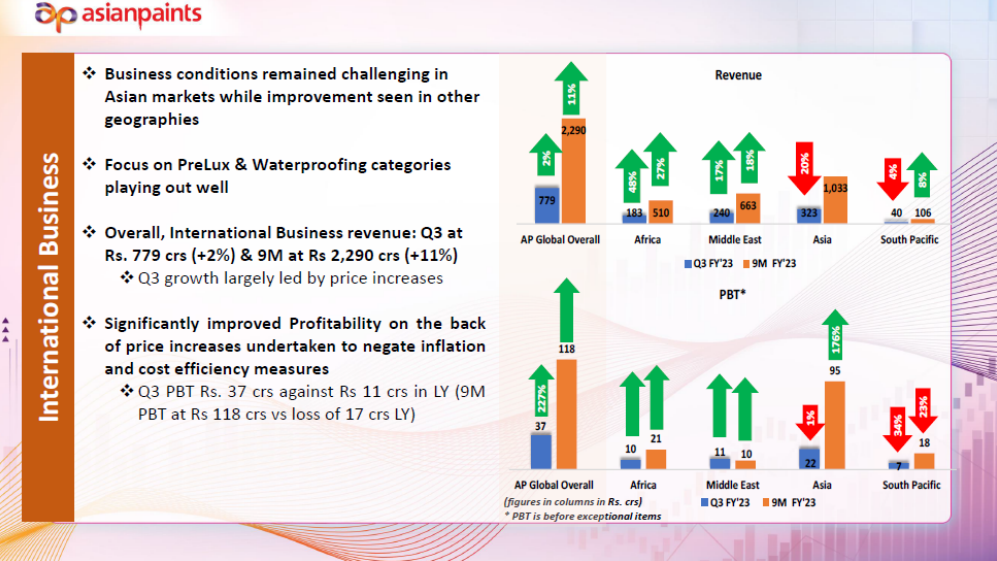 1月19日,印度涂料制造商亞洲涂料(Asian Paints)發布2023財年(2022年4月1日-2023年3月31日)Q3業績報告。
