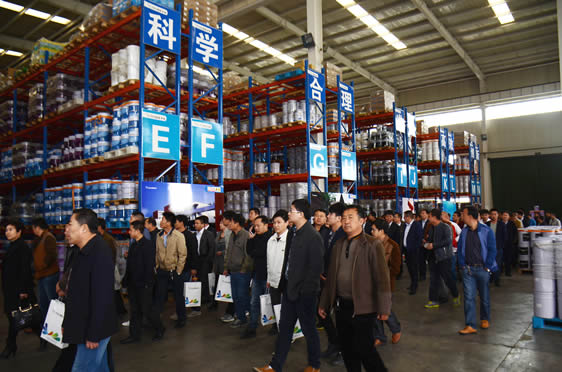參會的行業(yè)領導及自行車數(shù)百名廠商代表集體參觀晨陽水漆廠區(qū)