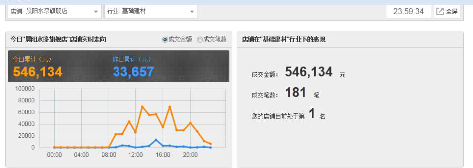 天貓晨陽水漆旗艦店日銷售額