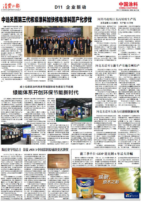 中國涂料報 2014年10月23日 星期四