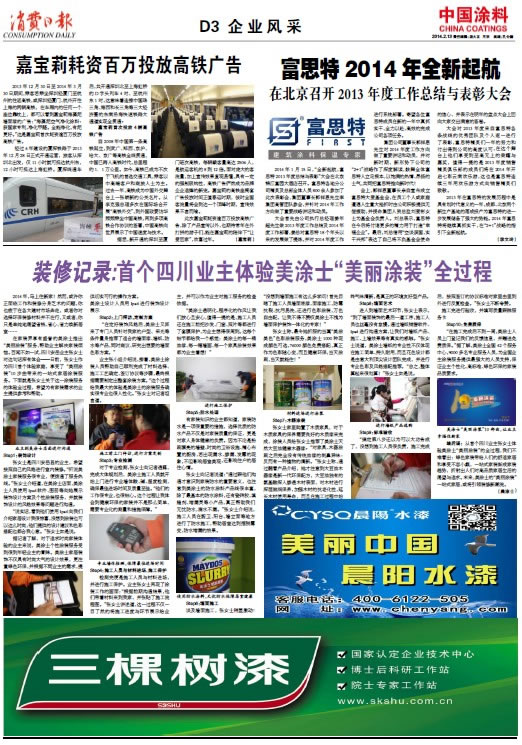 《中國涂料報》(電子版)的一切內容(包括但不限于文字、圖片、PDF、圖表、標志、標識、商標、版面設計、專欄目錄與名稱、內容分類標準以及為讀者提供的任何信息)僅供中國涂料信息網讀者閱讀、學習研究使用,未經中國涂料雜志社有限公司及/或相關權利人書面授權,任何單位及個人不得將《中國涂料報》(電子版)所登載、發布的內容用于商業性目的,包括但不限于轉載、復制、發行、制作光盤、數據庫、觸摸展示等行為方式,或將之在非本站所屬的服務器上作鏡像。否則,中國涂料雜志社有限公司將采取包括但不限于網上公示、向有關部門舉報、訴訟等一切合法手段,追究侵權者的法律責任。