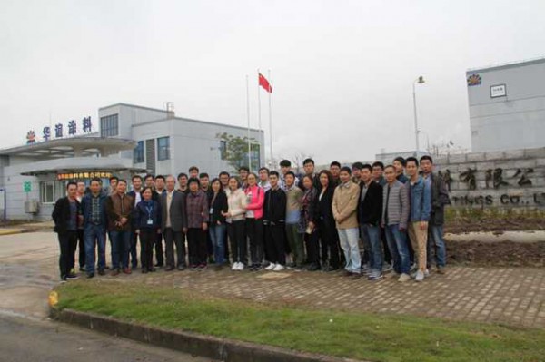 2016年11月21日,中國涂料工業(yè)大學(xué)首屆涂料專業(yè)技術(shù)培訓(xùn)班赴上海市華誼涂料公司參觀和進(jìn)行現(xiàn)場教學(xué)活動(dòng)。與全體培訓(xùn)班學(xué)員同行的有培訓(xùn)班教師、中國涂料工業(yè)協(xié)會(huì)顧問、涂料大學(xué)名譽(yù)副校長劉國杰教授級(jí)高工,培訓(xùn)班教師、上海工程技術(shù)大學(xué)(簡稱”工程大”)涂料工程學(xué)院副院長王景成教授和甘文君教授,培訓(xùn)班班主任巫德寬老師。受到華誼涂料公司黨總支童嘉瑛書記、華誼涂料公司戚平常務(wù)副總經(jīng)理等熱情接待,并對公司建設(shè)和發(fā)展情況作了簡介。全體師生到樹脂合成車間和制漆車間現(xiàn)場參觀,車間主任和技術(shù)人員認(rèn)真講解,參觀者積極提問,講解者耐心解答,互動(dòng)活躍,收到很好效果。