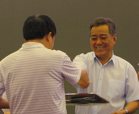 中國石油和化學(xué)工業(yè)聯(lián)合會李勇武會長為獲獎?wù)哳C獎